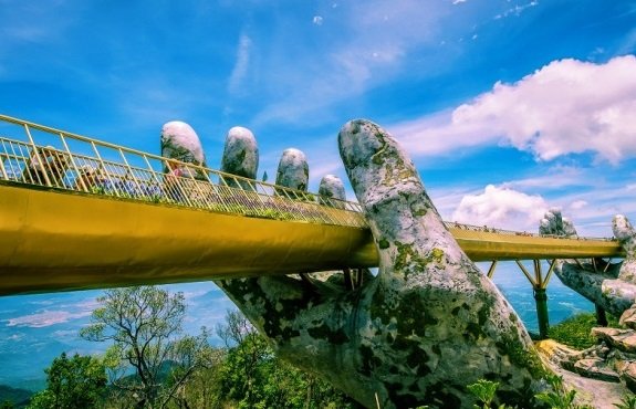 Như cây Cầu Vàng - một trong những điểm check-in yêu thích bậc nhất của giới trẻ hè 2018 chẳng hạn. Nằm lưng chừng trời, giữa núi rừng xanh biếc, được nâng đỡ bởi đôi bàn tay khổng lồ tựa hồ như đang rút ra một dải lụa vàng từ trong hốc núi, cầu Vàng không chỉ tạo cơn sốt với du khách mà còn trở thành nguồn cảm hứng để giới nghệ sỹ, người mẫu chọn đây là nơi khởi đầu cho một hành trình thời trang mang tên Fashion Voyage.