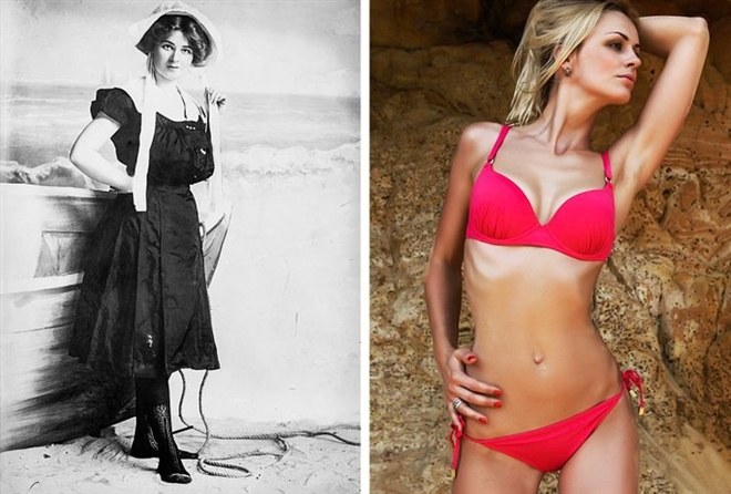 Những bộ đồ bơi của hiện tại và của thế kỉ 18 có vẻ không liên quan gì đến nhau. Những chiếc váy bèo nhún, tất dài, mũ lưỡi trai đã biến mất, thay vào đó là những bộ bikini gợi cảm, thoải mái.