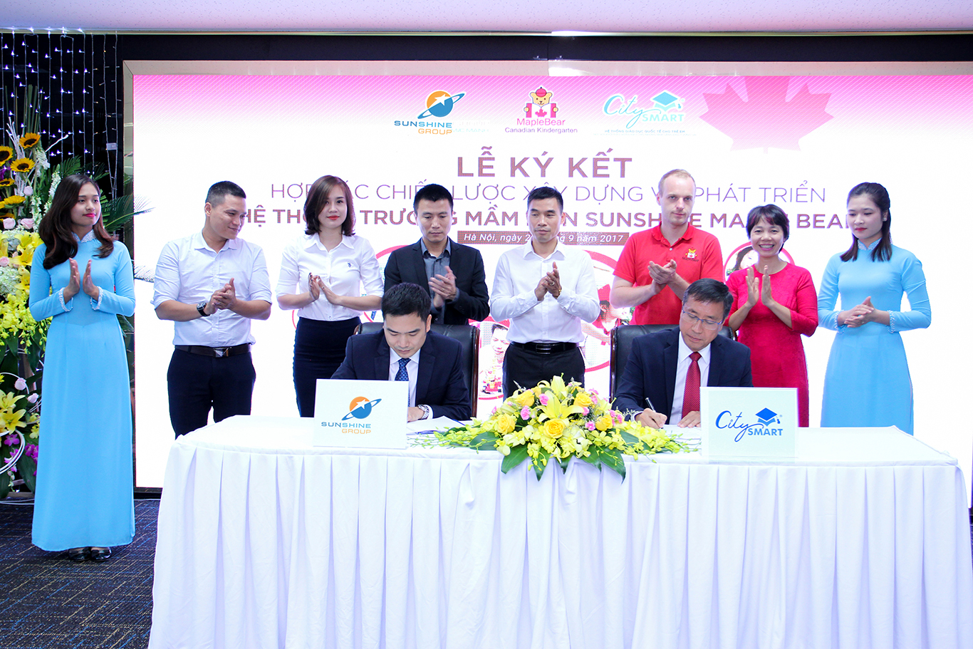 Trên cơ sở đó, ngày 20/9, lễ ký kết hợp tác chiến lược xây dựng và phát triển hệ thống Trường Mầm non quốc tế Sunshine Maple Bear giữa Sunshine Group và đối tác CitySmart đã diễn ra thành công tốt đẹp tại trụ sở của Sunshine Group tại Hà Nội.