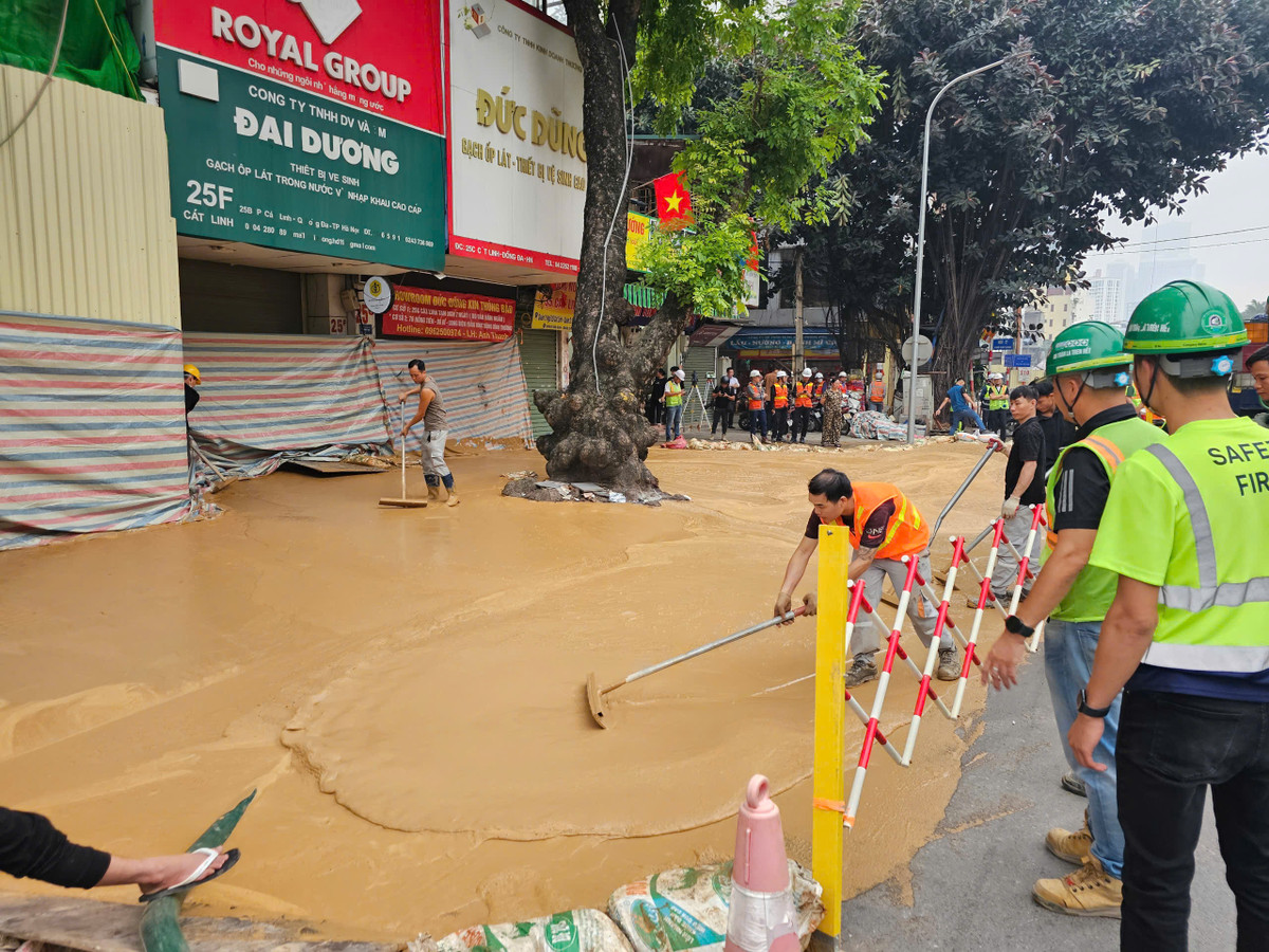Ngay khi phát hiện hiện tượng trên, nhà thầu thi công lập tức kích hoạt quy trình khẩn cấp của dự án, dưới sự giám sát của chủ đầu tư là Ban Quản lý Đường sắt đô thị Hà Nội (MRB), Tư vấn giám sát (PIC), chính quyền địa phương và các đơn vị liên quan, cho dừng việc khoan của máy TBM số 1 để giảm lượng bùn phụt lên nhưng vẫn phải đảm bảo ổn định gương đào.