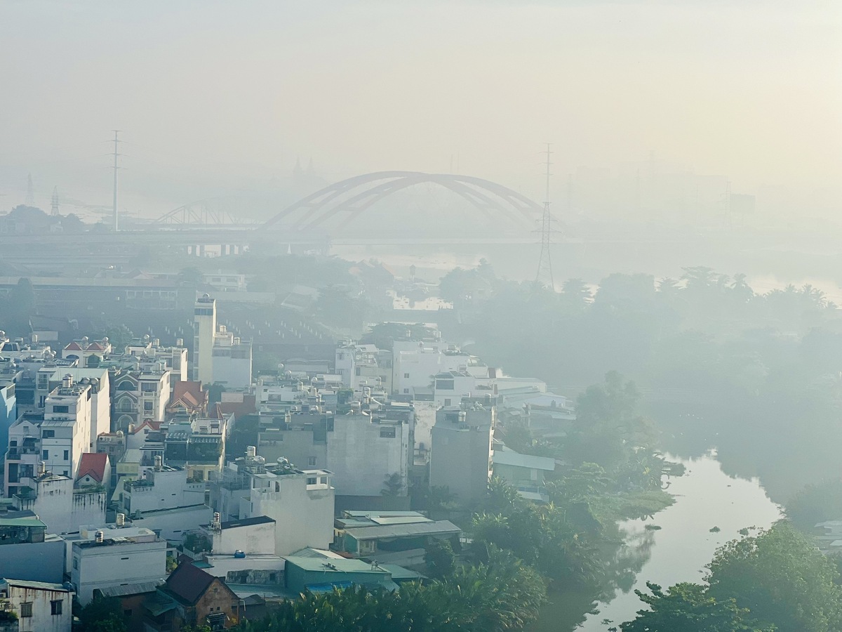 Khu vực cầu Chà Và (quận 8) mờ mịt sương mù.