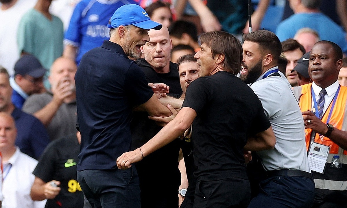 Sau khi trọng tài thổi còi kết thúc trận đấu, HLV Conte đến bắt tay HLV Tuchel nhưng không nhìn đối thủ. HLV trưởng của Chelsea không hài lòng và túm tay đồng nghiệp bên kia chiến tuyến. Lúc này, 2 HLV bắt đầu lời qua tiếng lại với nhau.