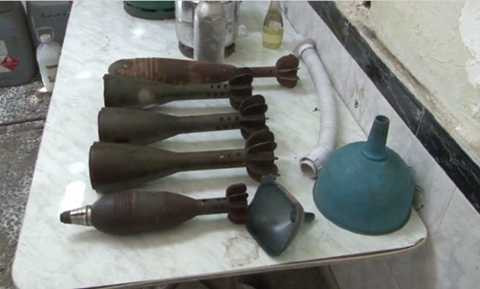 | Đạn cối được cho là chuẩn bị nhồi vũ khí hóa học của phe nổi dậy Syria |