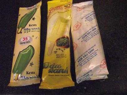 | 3 sản phẩm kem có tên Tràng Tiền chỉ có khác là nơi có số, nơi không có số sau chữ Tràng Tiền và tên nhà sản xuất.Ở giữa là sản phẩm kem đậu xanh của công ty CP kem Tràng Tiền - địa chỉ tại số 35 phố Tràng Tiền, bên trái là sản phẩm của Cty cổ phần kem Tràng Tiền - Tràng Tiền 35 và bên phải là kem đậu xanh của Cty cổ phần ĐT & PT Tràng Tiền. |