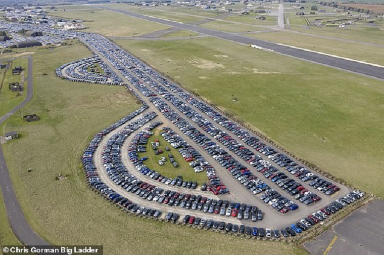 Bãi xe chật cứng xe ở Anh giữa mùa dịch. (Ảnh: Daily Mail)