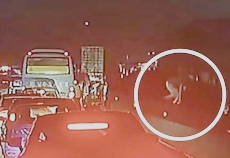 Nào ngờ, do trời quá tối, người đàn ông nhầm lan can cầu vượt cao tốc là đai phân cách đường bộ. Kết quả, sau khi bật nhảy qua lan can cầu vượt, anh rơi thẳng xuống nền đường phía dưới. Các nhân chứng tiết lộ, người đàn ông được đưa đến bệnh viện ngay sau khi tai nạn xảy ra.