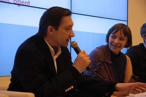 | Biên tập viên Dmitry Kosyrev trong một buổi giao lưu với độc giả |
