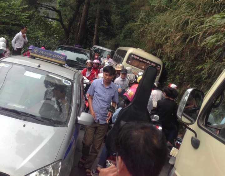 Lượng người, xe đổ về phía Tam Đảo Vĩnh Phúc quá đông khiến đường từ Hà Nội ra Nội Bài cũng tắc cứng trong nhiều giờ. (ảnh: Lê Nam)