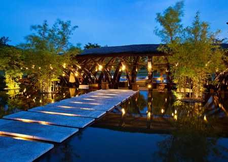 | Công trình Bamboo Wing vào buổi tối, khi vừa lên đèn. |