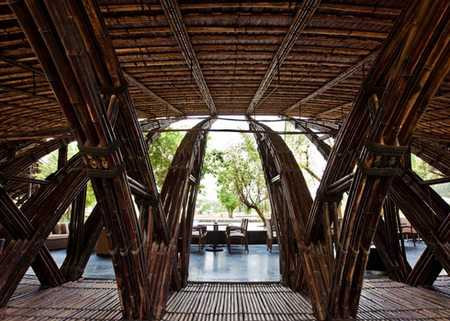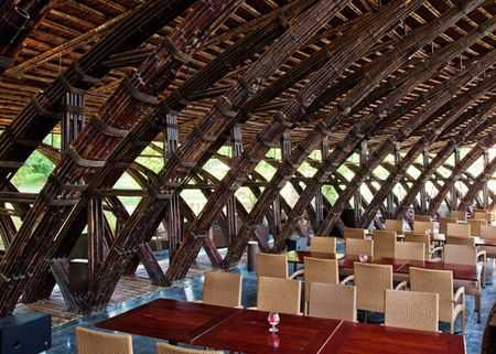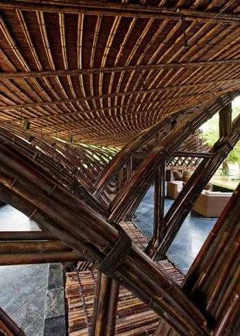 | Các nhịp tre kết thành những đôi cánh chạy dài thành vòm cong. |