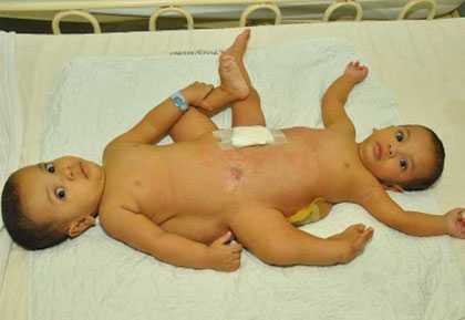 Hai bé trai sinh đôi người Malaysia Muaiman và Muaimin chào đời ngày 14/4/2011 với phần khung xương chậu và chân dính liền nhau. Ngoài ra, 2 bé trai này cũng có chung bàng quang và cơ quan sinh dục ngoài.