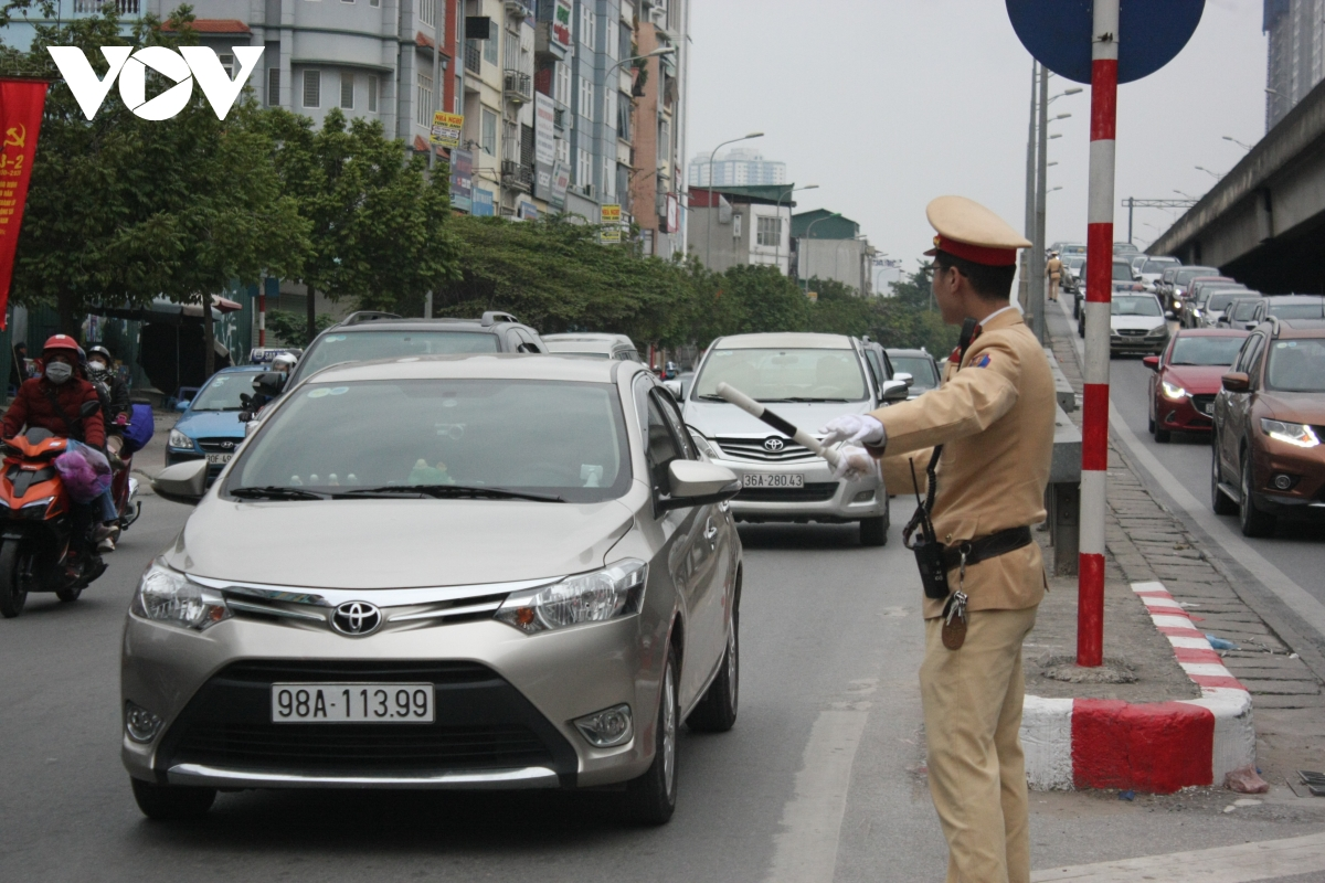 Cảnh sát giao thông xử lý phương tiện vi phạm an toàn giao thông.