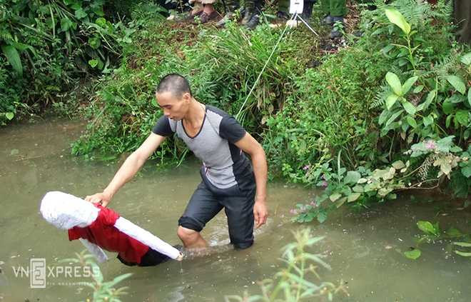 Hắn mang xác chị Mẩy xuống ao cạnh nhà, đè đá lên.