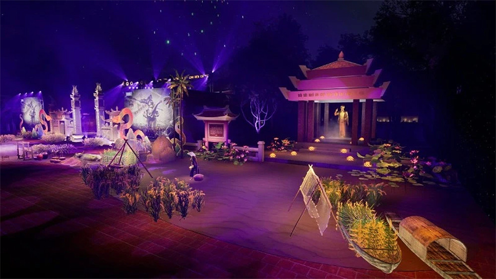 Phối cảnh sân khấu chương trình “Linh Lang - Khí thiêng hội tụ - Long Biên tỏa sáng”.