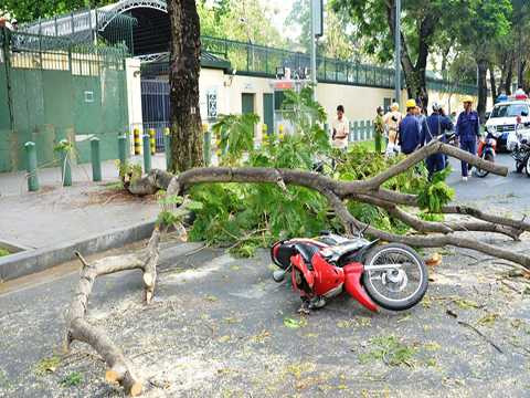 Cùng lúc này, chị Ngô Hoàng Như Thủy (SN 1994, ngụ quận Bình Thạnh) và chị Trần Hải Nhi (SN 1996, ngụ quận 1) do không chạy kịp bị nhánh cây rơi trúng vào người bị thương, xe hư hỏng nặng.