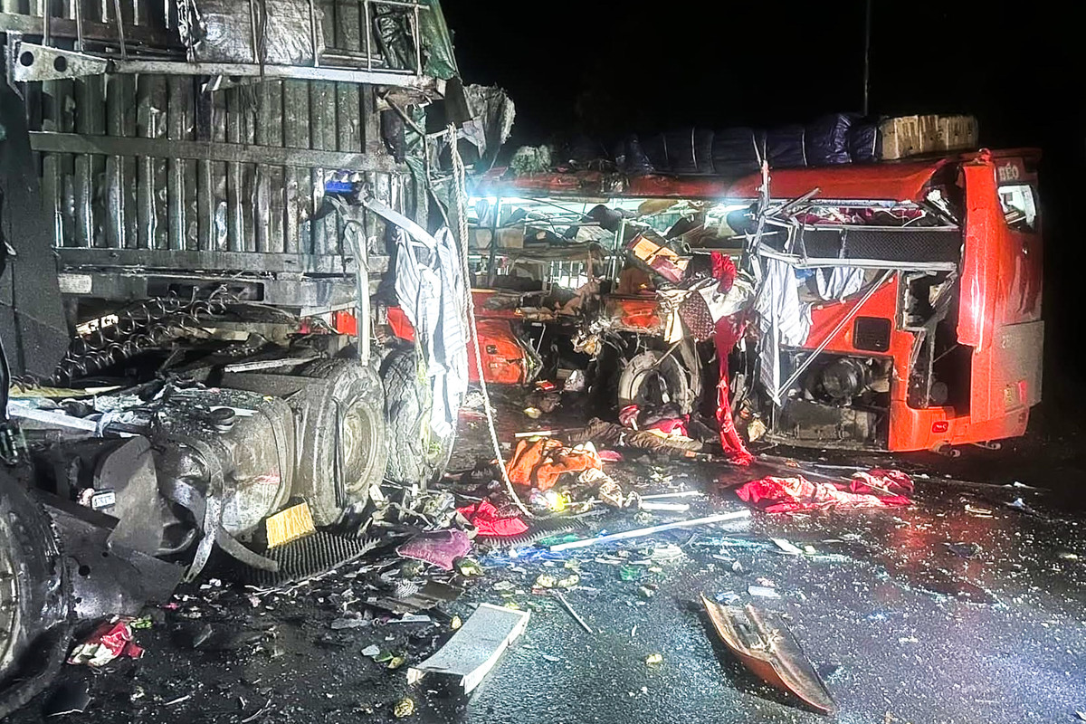 Cũng theo chị Nhung, sau tiếng nổ lớn, chiếc xe giường nằm cùng xe đầu kéo đều bị biến dạng, hư hỏng nặng. Lúc này, chị Nhung thấy nhiều người rơi từ xe khách xuống mặt đường.