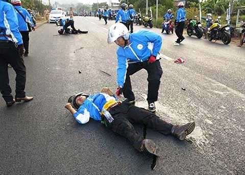 Các thành viên mô tô thể thao TP.HCM làm nhiệm vụ bảo vệ đoàn đua cũng di chuyển đến huyện Định Quán. Khi cách điểm xuất phát khoảng 1km thì xảy ra tai nạn kinh hoàng khiến hai người thương vong.