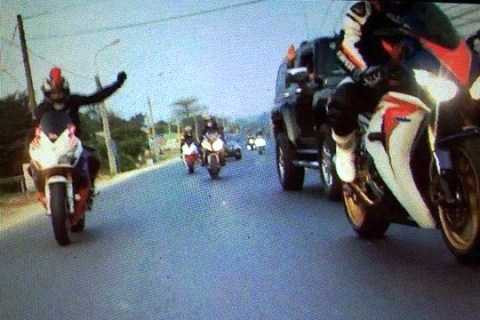 Anh H. (người đi cùng đoàn đua) kể, khi đoàn đang di chuyển thì xuất hiện nhóm mô tô phân khối lớn đi phượt khoảng 7 chiếc chạy với tốc độ cao.