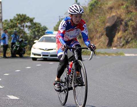 | VĐV Ngọc Huyền (Domesco Đồng Tháp) về nhất đèo Bảo Lộc. Ảnh Quang Liêm |