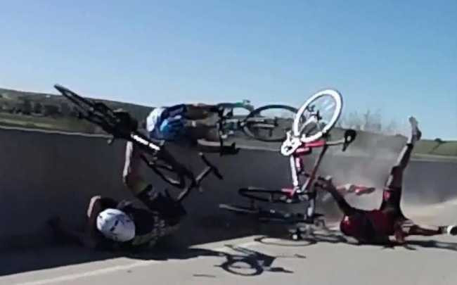 Trong một giải đua xe đạp diễn ra tại đường đua Santa Barbara, California, Mỹ, một vụ va chạm đã xảy ra khiến một tay đua suýt chút nữa mất mạng.