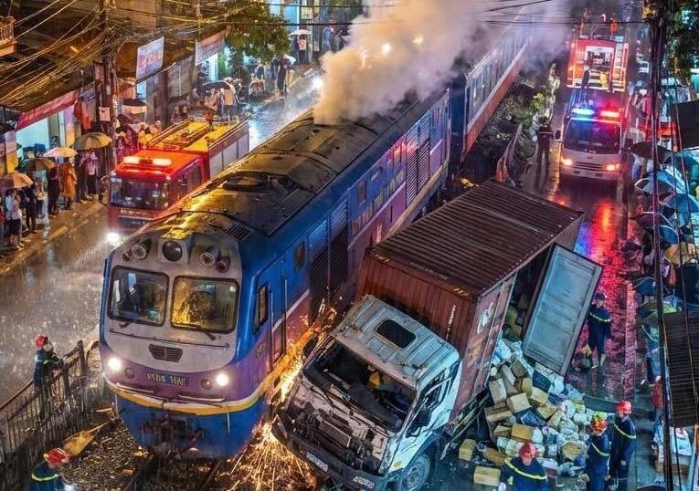Theo đại diện Cục CSGT, lái xe tải biển số 29H-792.xx không chấp hành hiệu lệnh báo hiệu đường sắt (báo hiệu, gác chắn tự động) tại đường ngang. Tài xế cũng không dừng xe nhường đường cho tàu hoả, dẫn đến xe bị mắc kẹt trên đường sắt và tai nạn xảy ra.