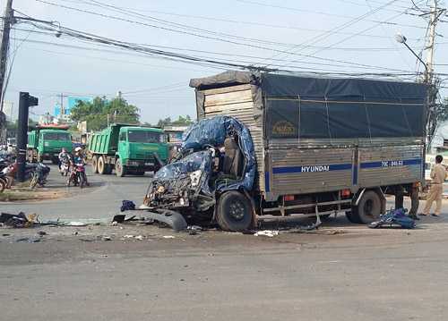 Theo thông tin ban đầu, tài xế Hồng đã để xe đâm trực vào hông ôtô tải lớn khi xe này chạy cắt mặt.
