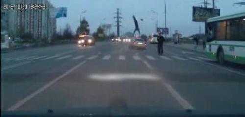hiếc ô tô hất tung một người đi đường ở Nga, nạn nhân bắn lên cao và xoay như chong chóng.