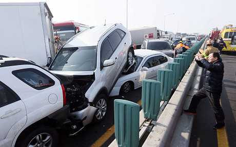Vụ va chạm xảy ra trong màn sương mù dày đặc, trên cây cầu nối liền sân bay quốc tế Incheon với Thủ đô Seoul.