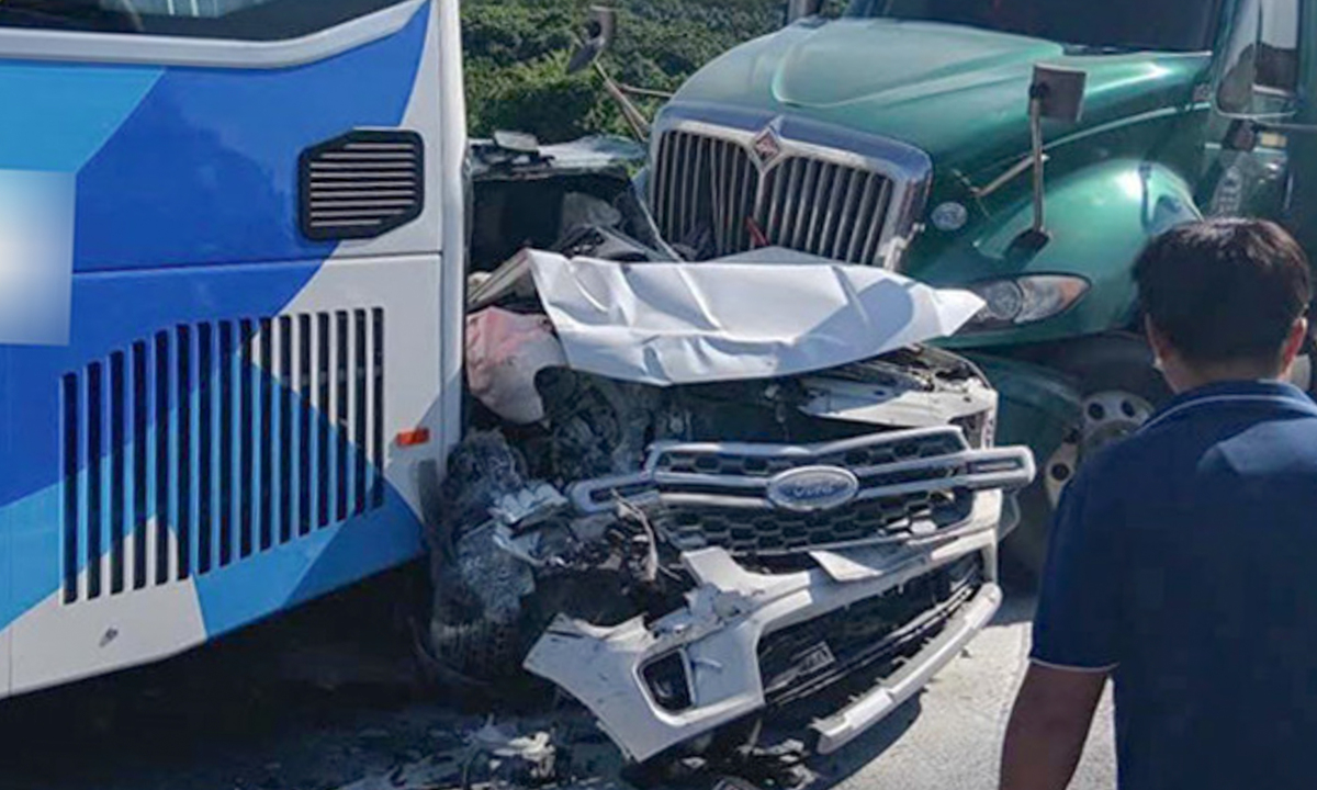 Vụ tai nạn liên hoàn xảy ra giữa 5 xe gồm: 2 ô tô con biển số Hà Nội, xe khách biển số Hà Nội, ô tô Ford Everest biển số Hà Nội, và xe đầu kéo biển số Hưng Yên.