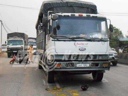 Cú va chạm khiến người đàn ông lạc tay lái rồi ngã ra giữa làn xe ô tô. Cùng lúc đó, chiếc xe tải (loại 8 tấn) mang BKS: 54V - 7882 lưu thông cùng chiều phía sau lao tới. Tài xế không xử lý kịp khiến bánh trước xe tải cán qua 2 chân và kéo lê nạn nhân về phía trước hơn 5m, bất tĩnh ngay tại chổ.