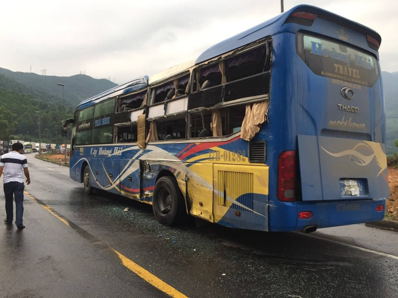 Vụ tai nạn khiến 4 xe hỏng nặng, một tài xế bị thương nhẹ. Rất may các hành khách không bị thương. Một trong 2 xe đầu kéo nằm chắn ngang đường khiến giao thông phía Nam hầm Hải Vân ách tắc nghiêm trọng.
