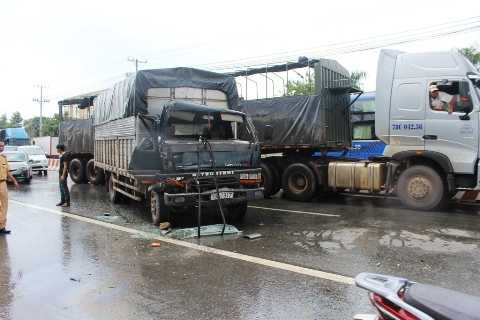 Tại hiện trường, đầu của chiếc xe ô tô 70H – 7317 bị bẹp dúm, 4 chiếc ô tô đều bị hư hỏng phần đầu và đuôi. Kính chắn phía sau xe ô tô con bể nát nhưng rất may không có ai bị thương.