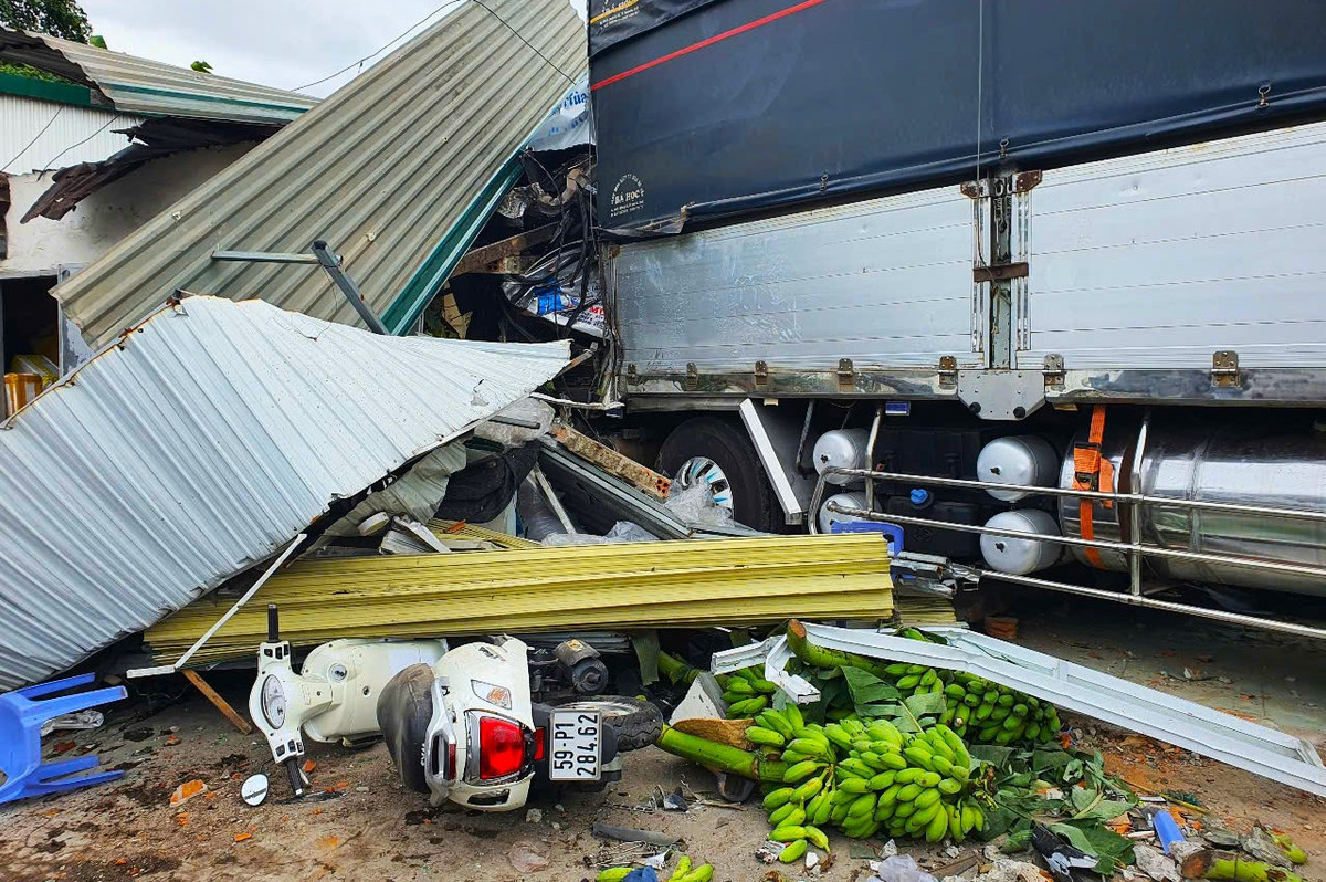 Tai nạn liên hoàn tông sập nhà dân, 3 người bị thương nặng ở Khánh Hoà.