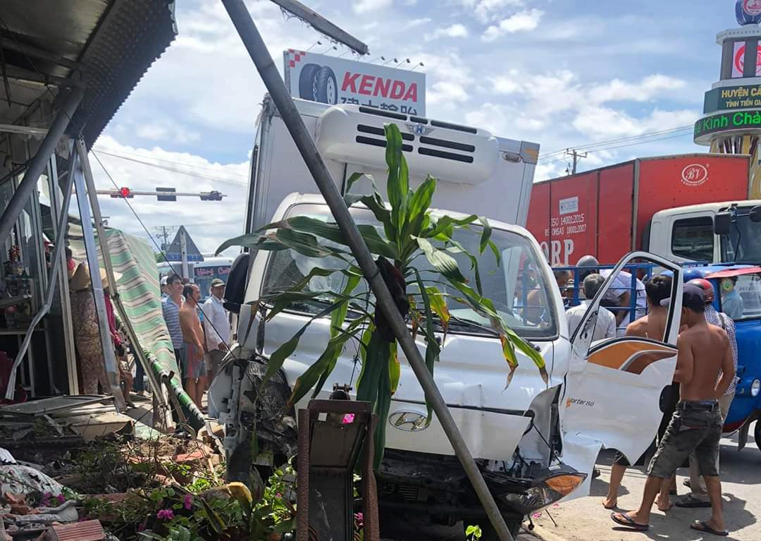 Cùng lúc này, xe tải của Nguyễn Tấn Vàng trượt về phía trước và tông vào xe tải 60C-43520 và xe máy do ông Nguyễn Thanh Dũng (54 tuổi, ngụ huyện Cái Bè) cầm lái, đang đậu cùng chiều. Sau đó, xe tải của Nguyễn Tấn Vàng tiếp tục tông vào căn nhà bên đường nhà của bà Lương Thị Hồng Ánh (57 tuổi) rồi mới dừng lại.