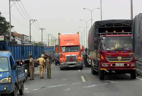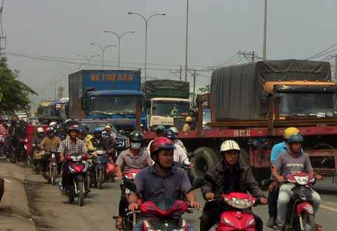 | Kẹt xe kéo dài khoảng 4 km từ cầu vượt An Sương đến trạm thu phí. |
