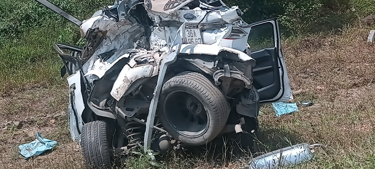 Ô tô con BKS Thanh Hoá bẹp dúm, biến dạng hoàn toàn sau tai nạn. (Ảnh: CTV)