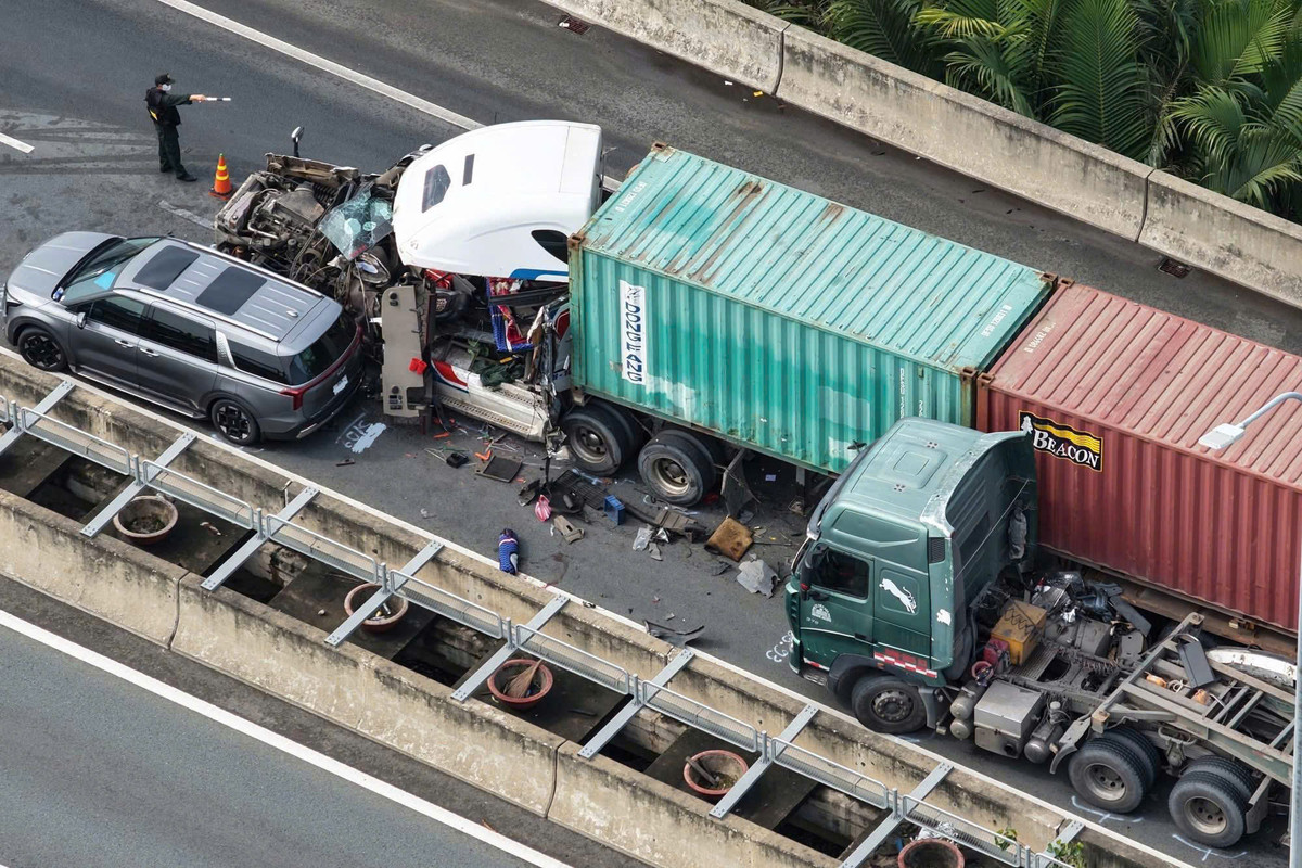 Theo thông tin ban đầu, vào khoảng 7h sáng cùng ngày, xe đầu kéo chở hai thùng hàng đi trên cao tốc TP.HCM-Long Thành Dầu Giây (đoạn qua phường Phú Hữu, TP Thủ Đức, TP.HCM) tông vào một xe container chạy phía trước, sau đó tiếp tục va chạm với hai ô tô phía trước.