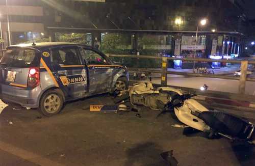 Vụ việc đã khiến ít nhất 7 xe máy bị hư hỏng, trong đó có một số xe gần như “nát bét”. Có xe còn nằm dưới gầm xe taxi. Những người điều khiển xe máy hầu hết bị thương, phải nhập viện cấp cứu.