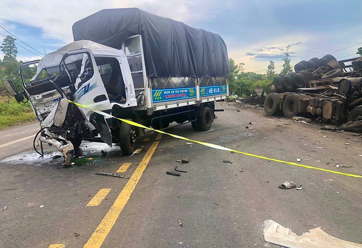Sau cú tông mạnh, xe đầu kéo tiếp tục tông vào xe tải mang BKS: 48H-011.65 do tài xế Nguyễn Thanh Quang (45 tuổi, ngụ huyện Đắk Song, Đắk Nông) điều khiển lưu thông theo hướng ngược lại.