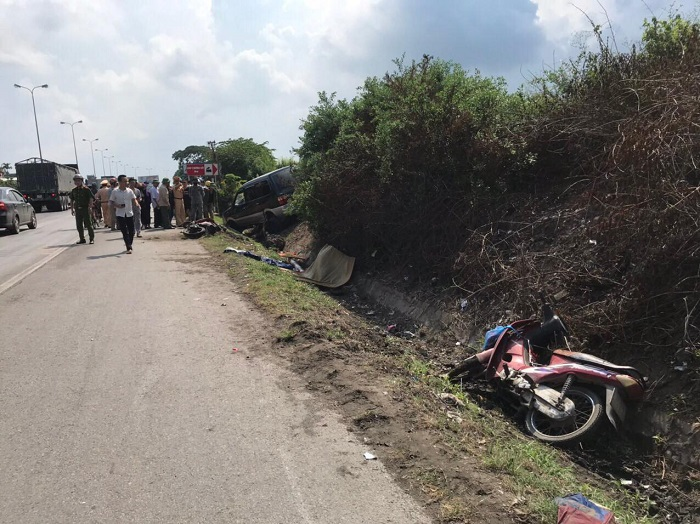 Vụ tai nạn đầu tiên xảy ra lúc 8h40, tại Km59+700 Quốc lộ 5. Thời điểm trên, ô tô mang BKS 15A-069.xx do ông Trần Thế C. (SN 1958, trú tại xã An Đồng, An Dương, TP Hải Phòng) cầm lái chạy theo hướng Hà Nội - Hải Phòng va chạm với xe máy BKS 34B2-142.xx do chị Đỗ Thị L. (SN 1990, trú tại xã Tam Kỳ, Kim Thành, Hải Dương) điều khiển và xe máy BKS 16K4-125x do ông Nguyễn Thanh T. (SN 1945, trú tại xã Toàn Thắng, Gia Lộc, Hải Dương) lái.
