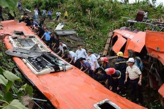 Bộ trưởng Đinh La Thăng dẫn đầu đoàn công tác tới kiểm tra tại hiện trường chiếc xe khách gặp nạn ở đáy vực |