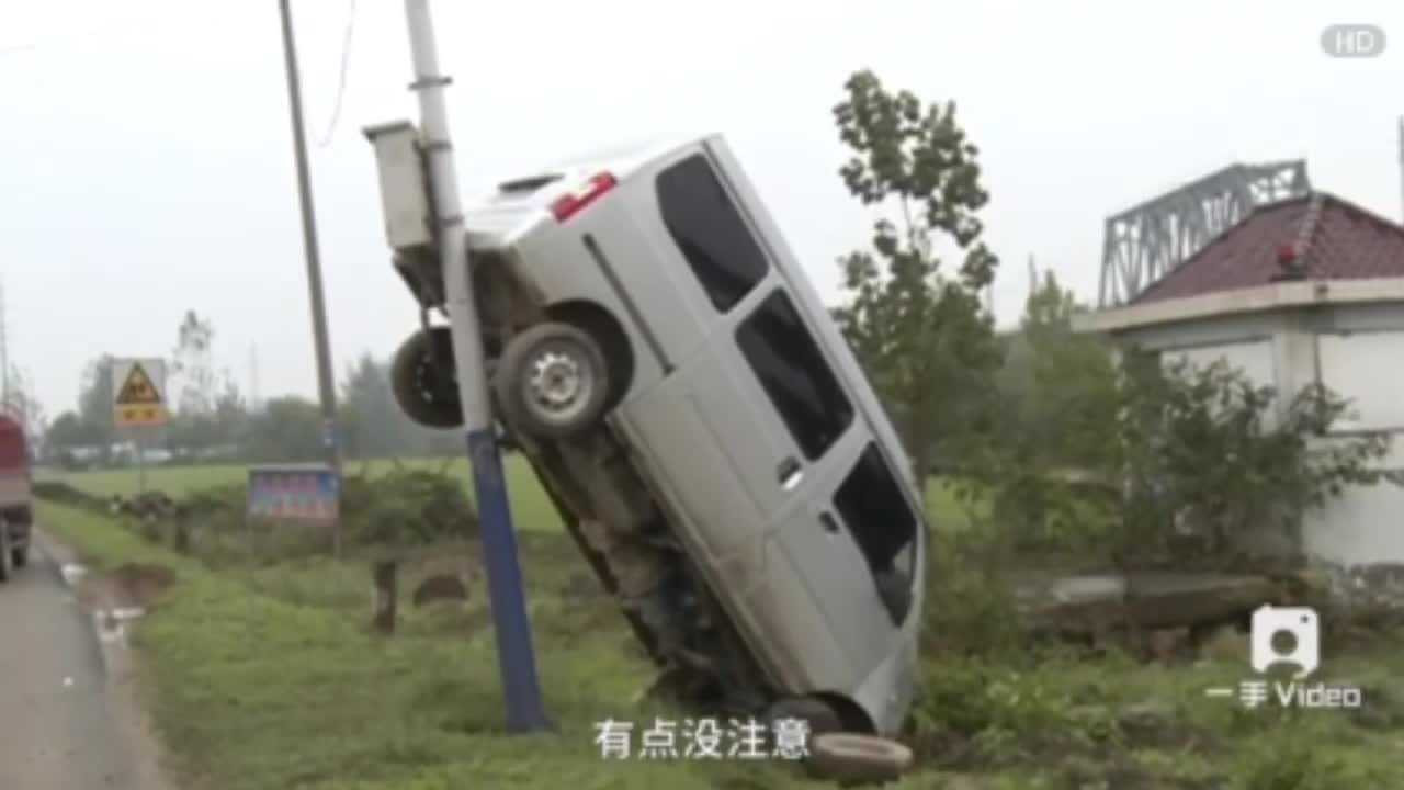 Vụ tai nạn xảy ra vào ngày 28/10 trên một con đường thuộc tỉnh An Huy, Trung Quốc. Tài xế, người chỉ bị thương nhẹ ở tay, cho biết chính mình đã gây ra vụ tai nạn oái oăm chỉ vì "một chút lơ là".