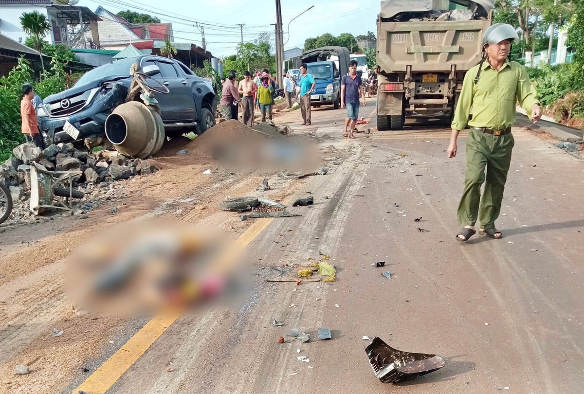 Vụ tai nạn làm ông Nguyễn Quang Hòa, vợ Nguyễn Thị Kiều cùng con gái 6 tuổi tử vong tại chỗ. Các phương tiện hư hỏng nặng, xe máy biến dạng nằm dưới gầm xe ô tô tải.