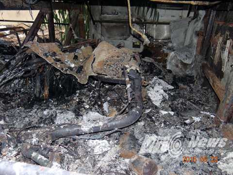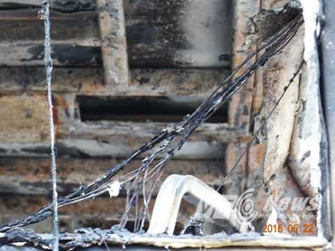 | Hệ thống dây dẫn điện bị cháy đen. Ảnh: Phan Cường |