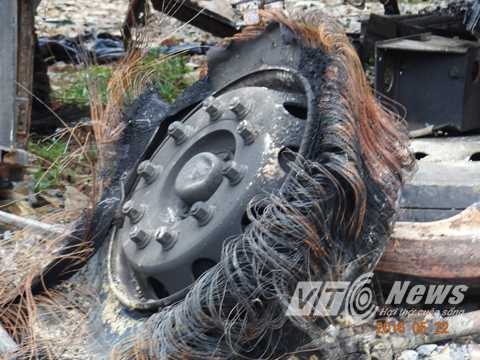 Riêng xe tải 86C-05385 hàng hóa còn nguyên vẹn nhưng đầu xe bị móp, cháy và bình xăng bị văng nắp.