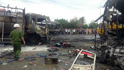 Trước đó, khoảng 4h15 ngày 22/5, chiếc xe khách giường nằm của Hãng Phương Trang (BKS 51B -11224) chạy trên quốc lộ 1, hướng Quảng Ngãi đi TP.HCM thì xảy ra va chạm với xe khách giường nằm (BKS 38N - 5577) chạy chiều ngược lại. Cú va chạm cực mạnh khiến cả hai xe bốc cháy tại chỗ. Do đây là tuyến đường cao tốc, các xe chạy với tốc độ cao nên sau cú va chạm, chiếc xe tải chạy hướng TP.HCM - Phan Thiết lao tới, không kịp hãm phanh nên tiếp tục đâm thẳng vào hai xe giường nằm tạo nên tai nạn liên hoàn.