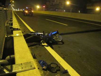 Cú va chạm mạnh khiến người điều khiển xe máy (nam, khoảng 30 tuổi) bắn lên cao rồi ngã xuống khoảng trống giữa hai dải phân cách và rơi xuống chân cầu ở độ cao trên 5m, tử vong tại chỗ.