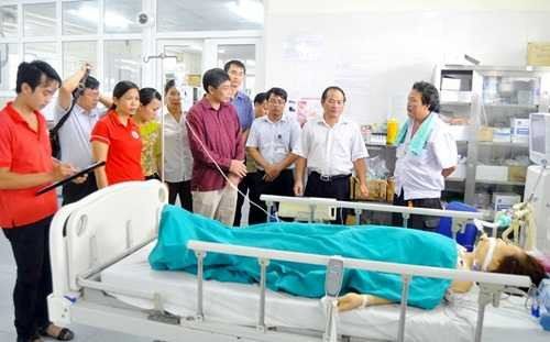 | Nạn nhân Ly khi đang được điều trị tại bệnh viện đa khoa Lào Cai (Ảnh: CTV) |
