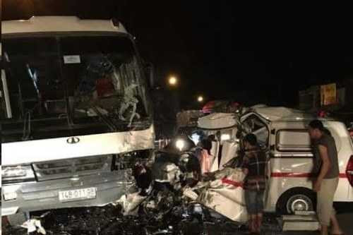 Sau cú đối đầu, xe cấp cứu bẹp dúm, nằm xoay ngang, cửa kính văng tung tóe khắp nơi. Xe chở công nhân hư hỏng nặng phần đầu. 5 người trên xe cấp cứu gồm y tá, người nhà và bệnh nhân bị thương nặng, lái xe chết tại chỗ. Những người trên xe chở công nhân may mắn không ai bị thương.