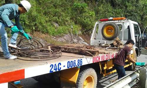 | Dây cáp được đưa xuống vị trí chiếc xe rơi |